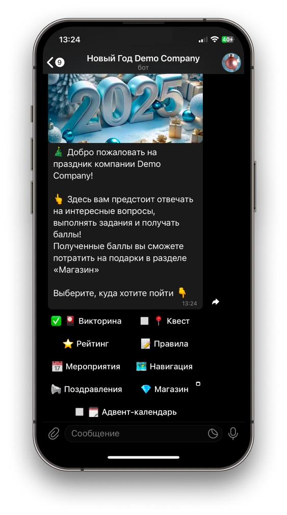 Это - новогодний Telegram-bot для вашей компании